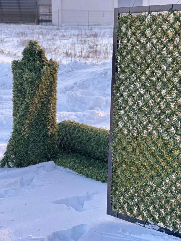 Зелені паркани поєднують вигляд натуральної хвої з практичністю сучасних матеріалів — вони довговічні, не потребують складного догляду, забезпечують приватність і зберігають охайний вигляд територій упродовж усього року.