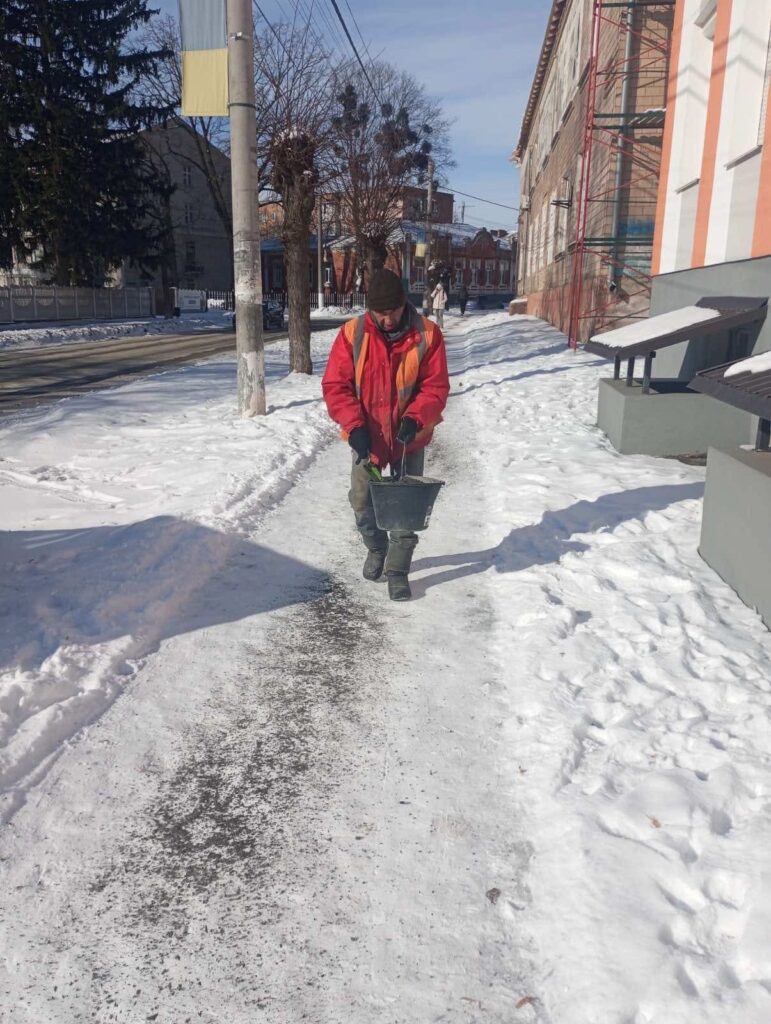 КП «Комунальник» протягом тижня забезпечувало прибирання скверів і площ, зупинок громадського транспорту, дитячих і спортивних майданчиків, вивезення сміття, а також посипку доріг, тротуарів, зупинок і пішохідних переходів у складних погодних умовах.