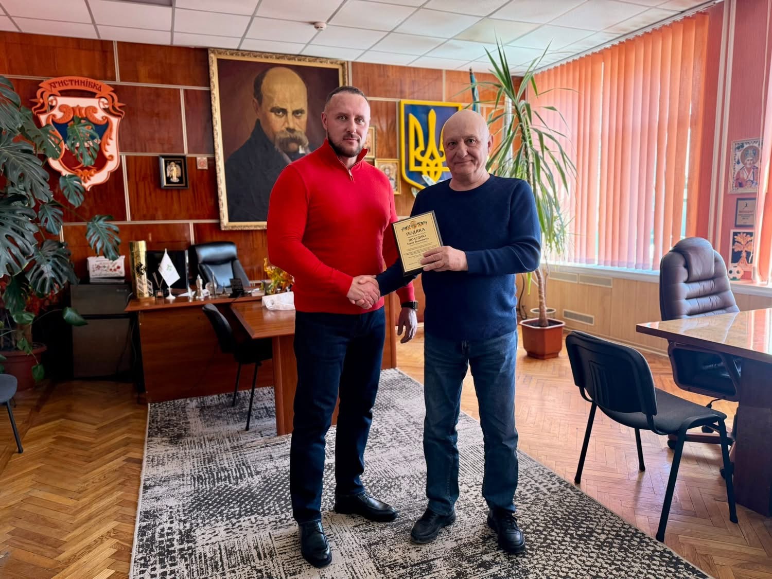 Міський голова Микола Наконечний подякував Івану Полудню за системну допомогу громаді та активну громадянську позицію, відзначивши його внесок у розвиток ветеранських ініціатив.