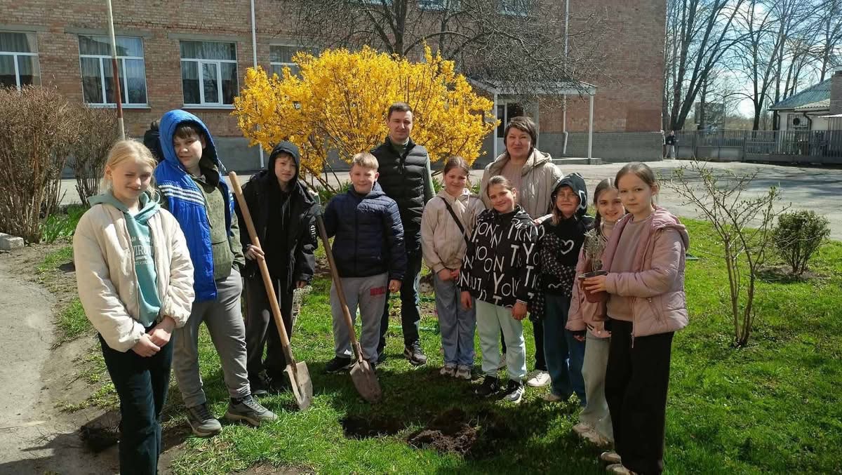 Нещодавно учні 5-А класу разом із класним керівником Інною Посною долучилися до озеленення шкільного подвір’я. Діти висадили декоративні рослини — спірею, дерен, хосту та лаванду. Такі насадження не лише прикрашають територію, а й створюють комфортну атмосферу для щоденного перебування школярів.